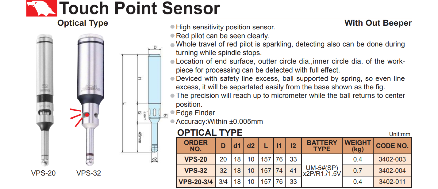 – Cảm biến tiếp xúc VPS-20, VPS-32, VPS-20-3/4 không cần quay khi đo.