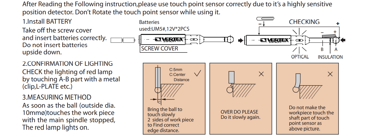 – Cảm biến tiếp xúc được sử dụng để dò điểm, góc, cạnh, bề mặt chi tiết trên máy phay, máy CNC.