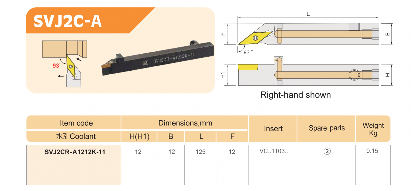 Cán dao tiện SHAN GIN SVJ2CR-A1212K-11 , SVJ2C-A SVJ2CR-A1212K-11