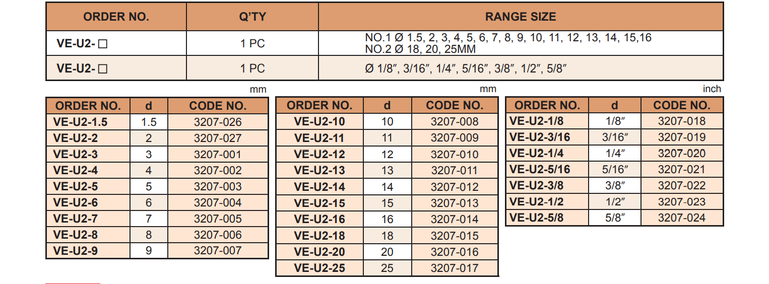 Mã sản phẩm: VE-U2-1/2, VE-U2-5/8