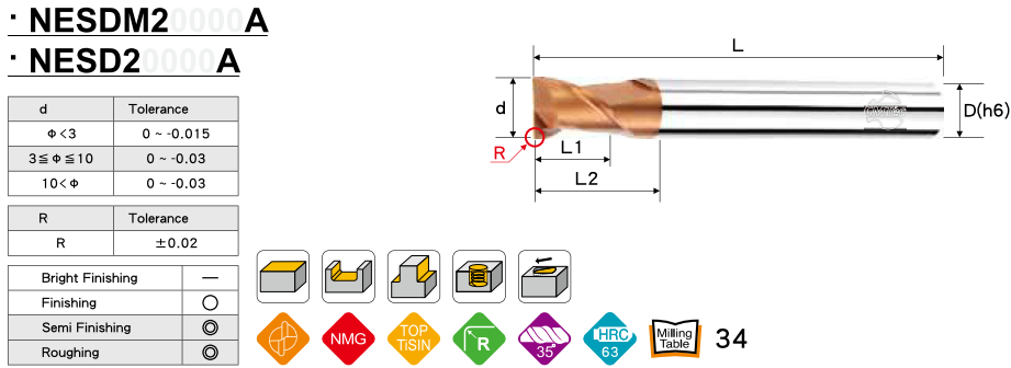 Dao phay ngón CMTéc dòng N620 là dòng dụng cụ cắt đa dụng cho hiệu suất cực cao tạo bề mặt chi tiết mịn bóng, dụng cụ cắt này áp dụng cho công việc gia công nhiều vật liệu như các loại thép hợp kim, thép gang, thép dẻo, Inox ... thích hợp gia công độ chính xác cao, đáp ứng được những tiêu chuẩn khắt khe trong gia công.