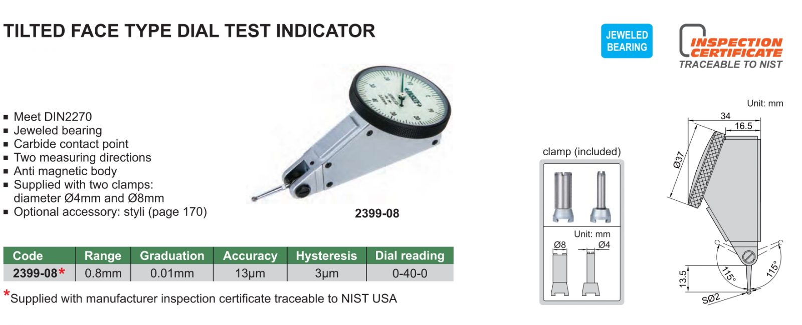 Đồng hồ so chân gập INSIZE là loại đông hồ so ứng dụng đo độ dơ, độ lệch trong gia công và sản xuất cơ khí