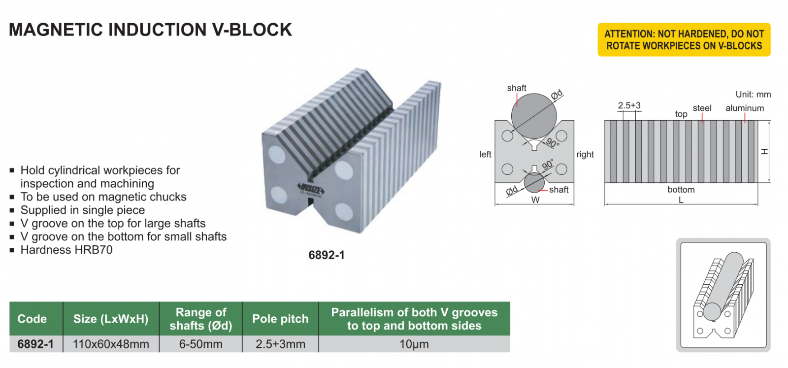 Khối V từ cố định INSIZE 6892-1 , MAGNETIC INDUCTION V-BLOCK 6892-1