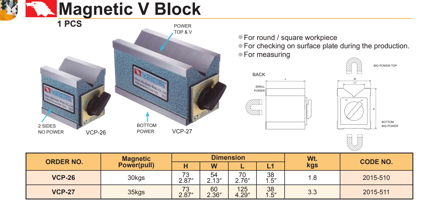 Khối V từ tính Vertex VCP-26 dùng để gá kẹp chi tiết tròn trong quá trình đo kiểm…