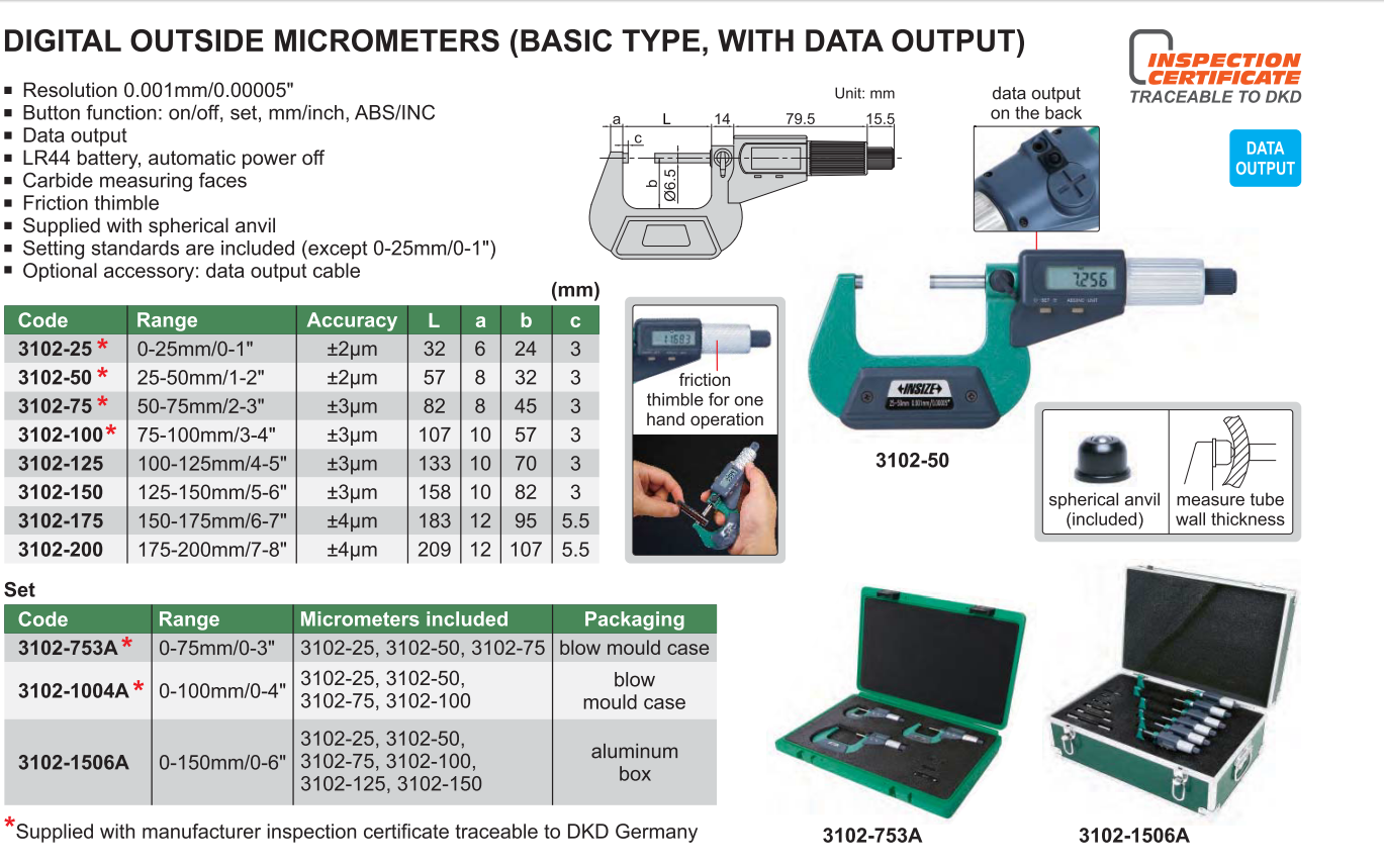 Panme điện tử INSIZE là đồ dùng có nhiều chức năng phạm vi đo rộng, độ chính xác tương đối cao, dễ sử dụng, giá cả rẻ…