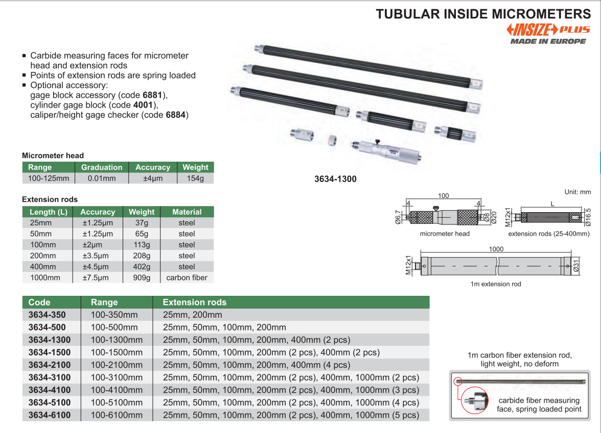 Panme đo trong dạng ống INSIZE là đồ dùng có nhiều chức năng phạm vi đo rộng, độ chính xác cao, dễ sử dụng, giá cả rẻ…