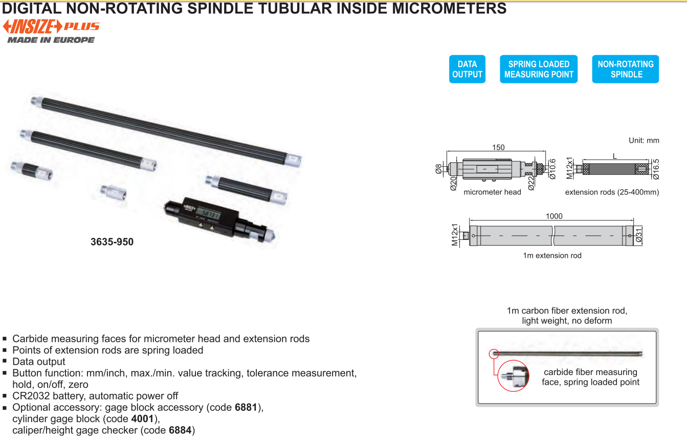 Panme đo trong dạng ống INSIZE là đồ dùng có nhiều chức năng phạm vi đo rộng, độ chính xác cao, dễ sử dụng, giá cả rẻ…