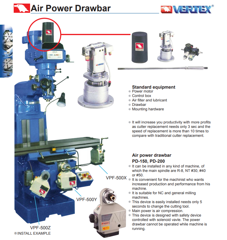 It can be installed in any kind of machine, of which the main spindle are R-8, NT #30, #40 or #50.